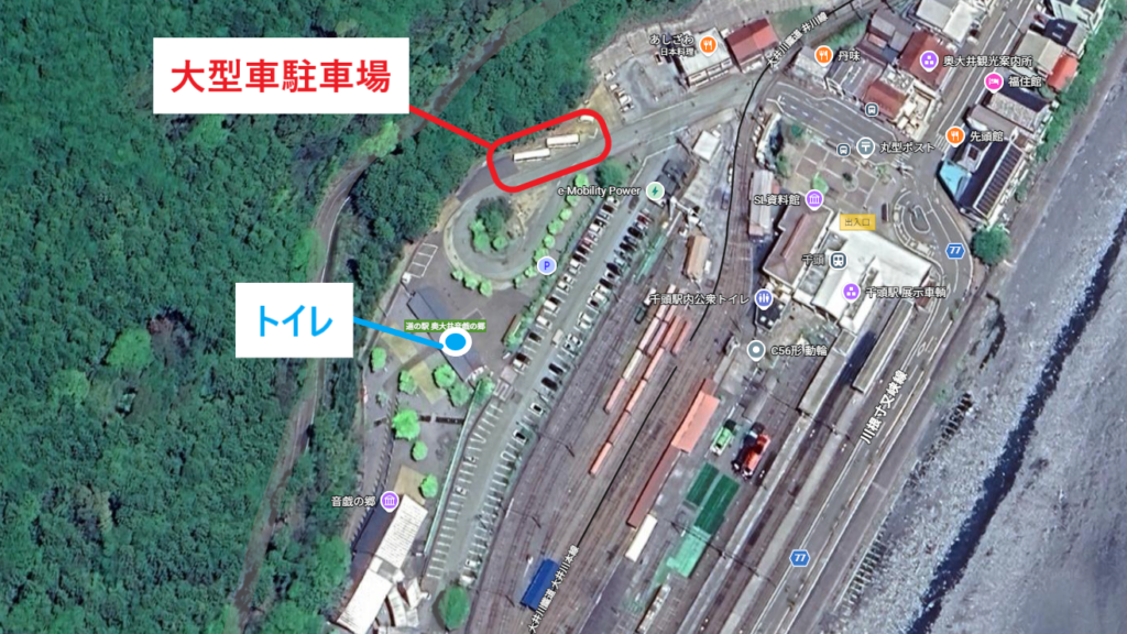 また、駐車場のすぐ隣には千頭駅がありますが、19時以降の列車の運行はないため、静かに過ごすことができます。