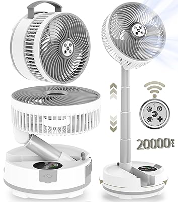 20000mAhの大容量バッテリー搭載で、最弱なら最大113時間の連続稼働が可能なオールインワンモデル。USB充電式・伸縮式(高さ14.3〜58cm)・自動首振り・リモコン付きなど、機能面でも充実しています。