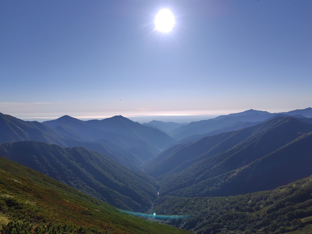 日高山脈最高峰の風格に満ちた山頂からは、北は十勝連峰、南は襟裳岬方向まで見渡せる360度の大パノラマ。