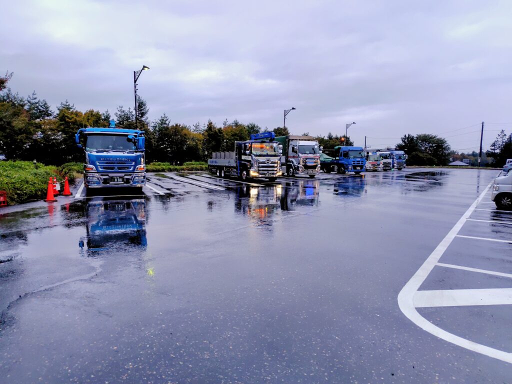 ローソン、トイレ前の駐車場は、大型車駐車場との距離が非常に近いので、アイドリングの影響を強く受けます。駐車している大型車も多く、静かに過ごすことは難しい道の駅といえます。