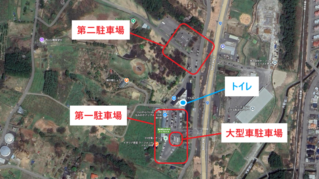 - 第一・第二駐車場ともに国道7号から離れて駐車できる