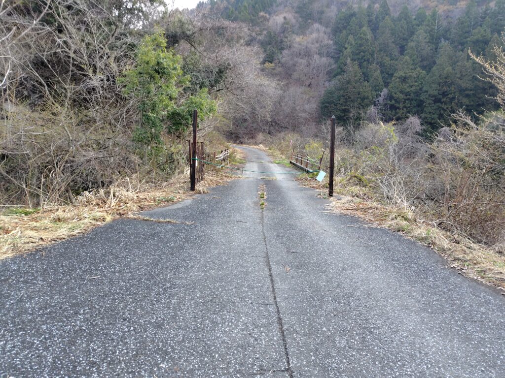 駐車場のすぐ隣には簡易的なゲートが設置されており、ゲートからは林道歩きになります。