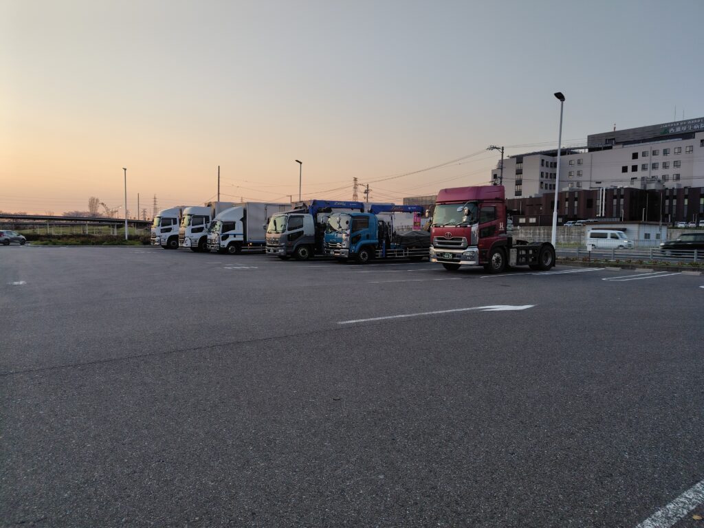隣接する道路や大型車駐車場から十分距離を取って駐車しやすく、静かに車中泊しやすい。