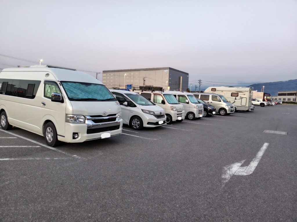- 車中泊している車が多い