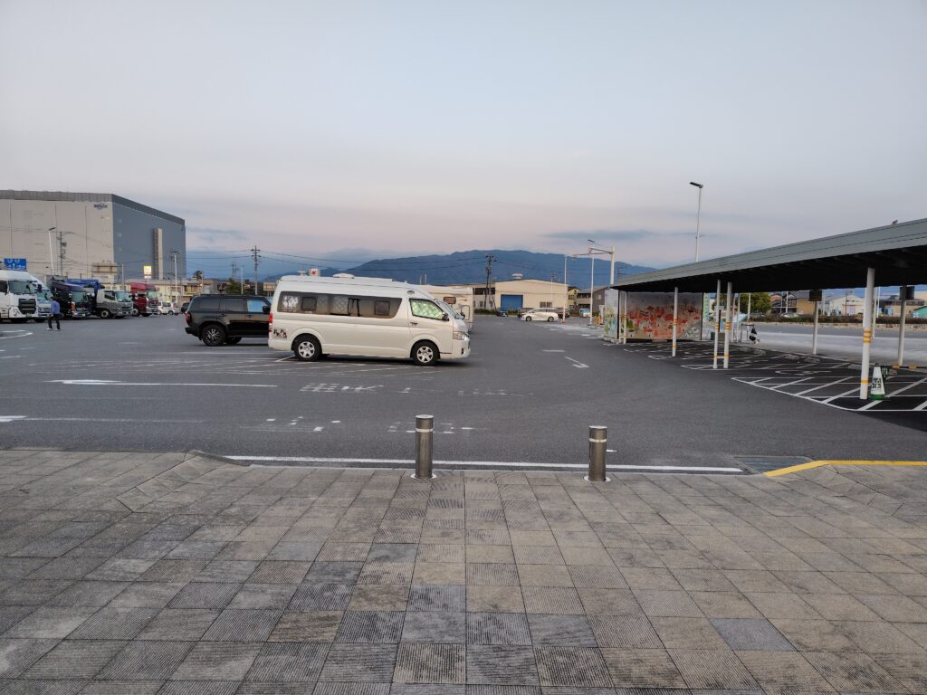 この道の駅の駐車場は広く、車中泊している他の車と間隔を空けて車中泊しやすくなっています。
