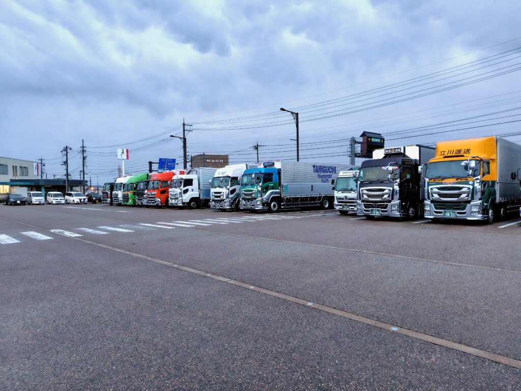 - 大型車の駐車が多く、アイドリング音が響く