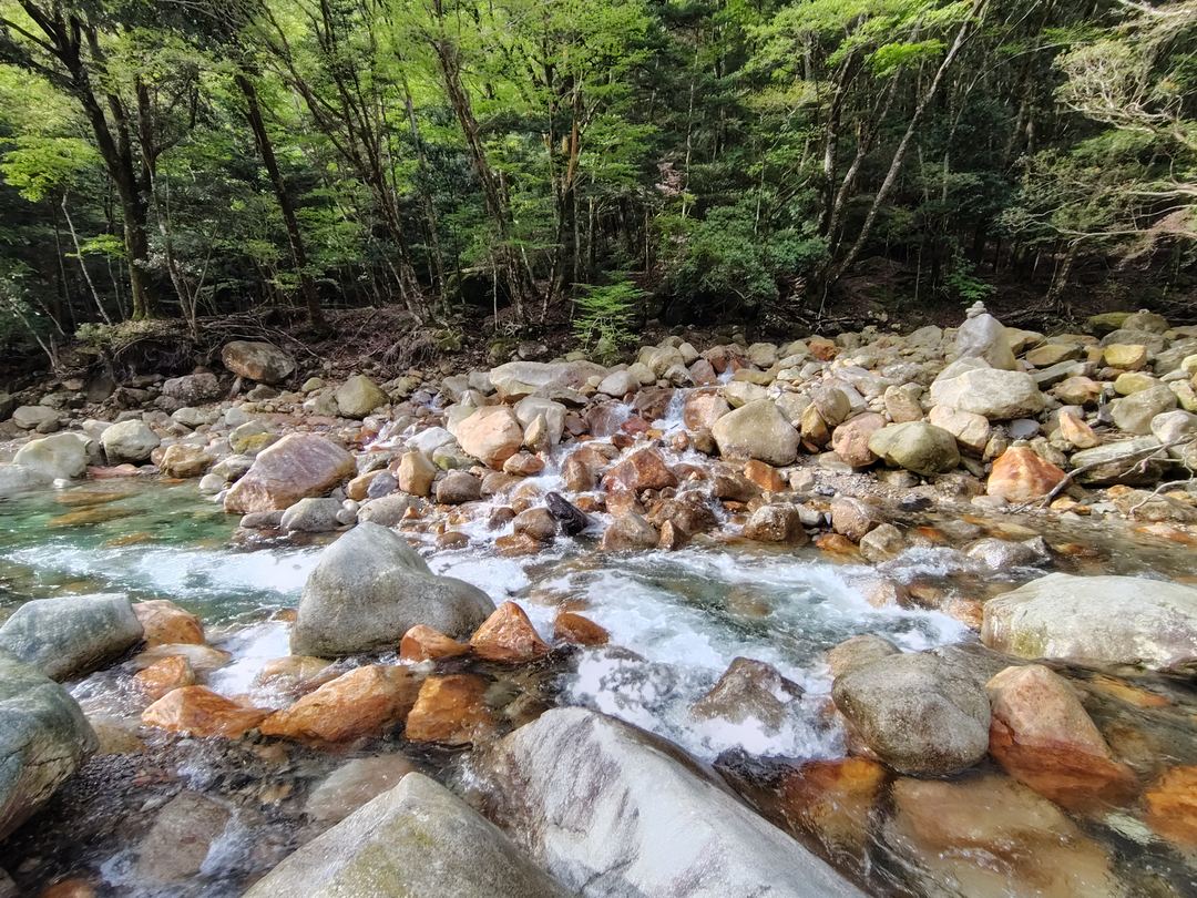 山荘前の小広場を経由して、沢の徒渉(としょう)を繰り返しながら奥へ進んでいきます。