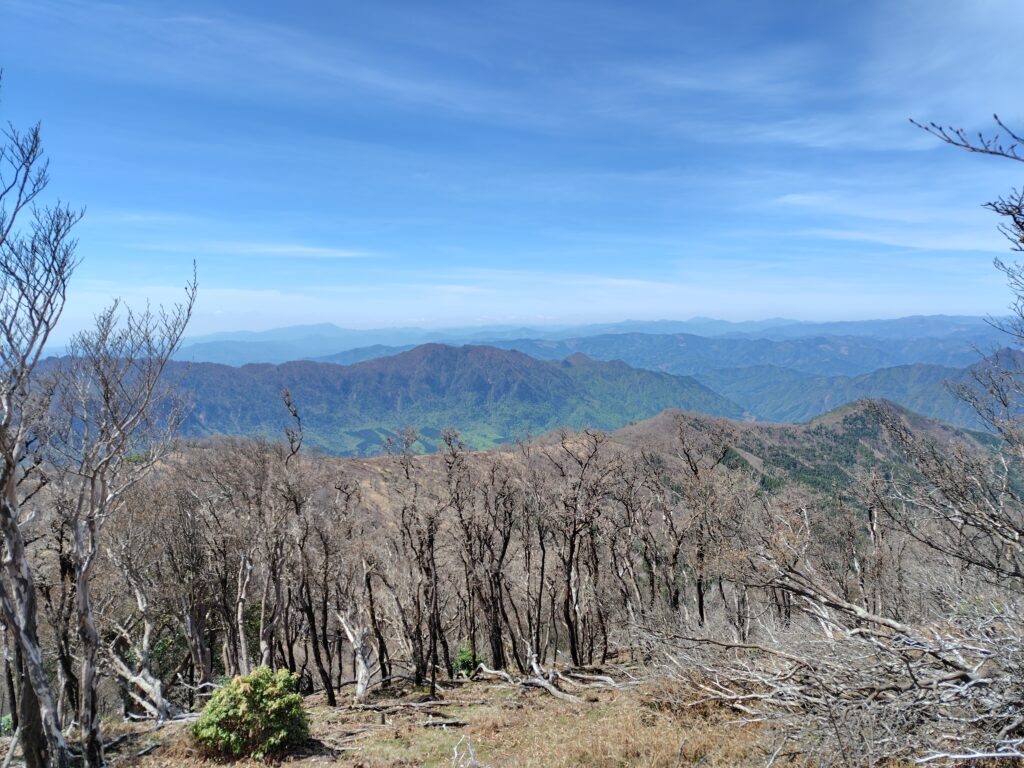 山頂からは南側の展望がよく、尾鈴山や市房山などの名峰を一望できます。