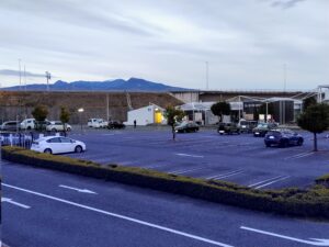 美術館前のメイン駐車場もドライブイン前の駐車場も、道路との距離が近いため走行音の影響を受けやすいです。
