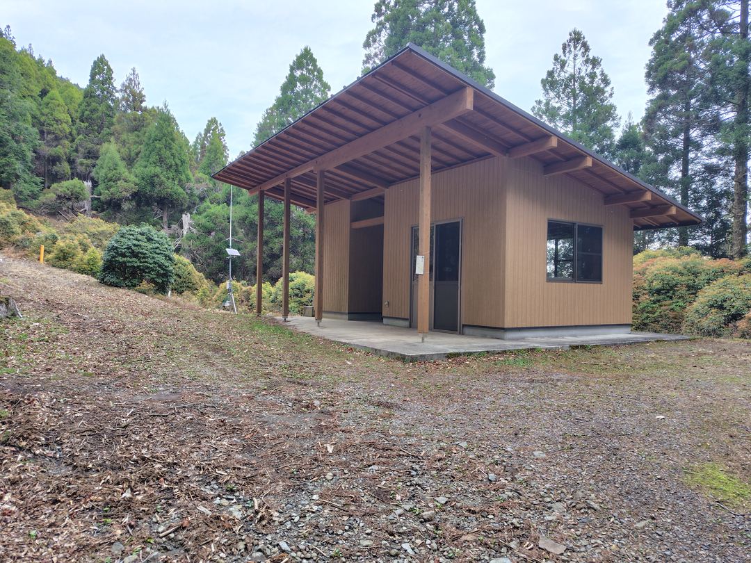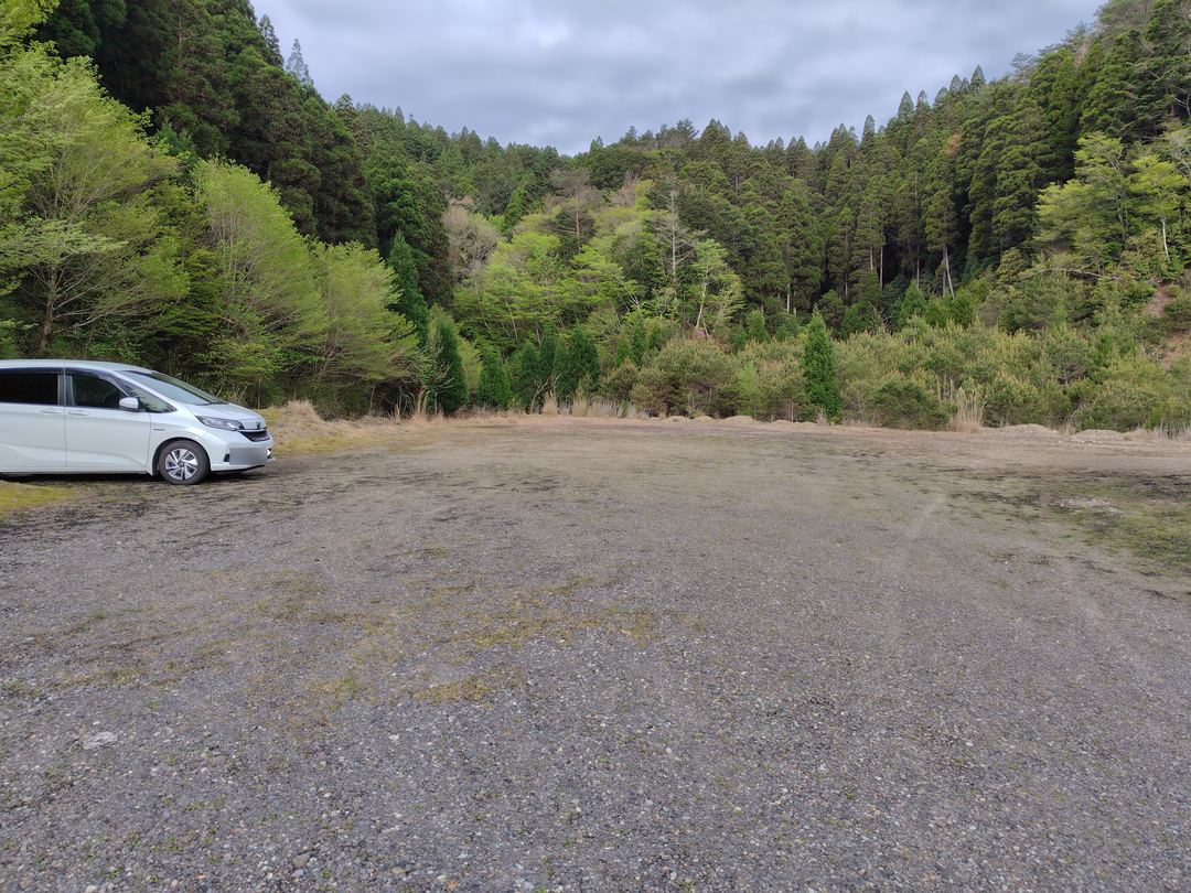 山中の林道を奥まで進んだ先にある砂利の駐車場で、仮設トイレが設置してあります。